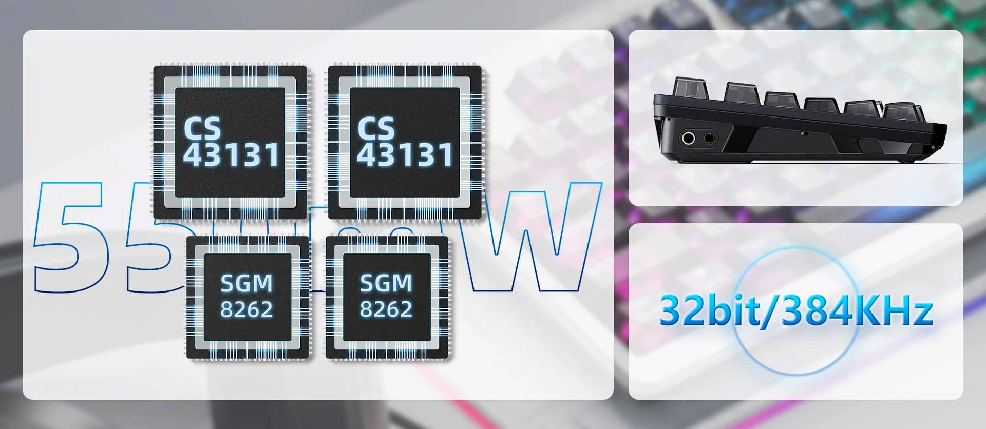 Клавіатура оснащена двома ЦАП Cirrus Logic CS43131 та двома підсилювачами SGMicro SGM8262. Підтримується звук до 32 біт/384 кГц та DSD256. Крім стандартного роз'єму 35 мм є вихід 44 мм. Tom's Hardware пише, що характеристики відповідають підсилювачу для навушників FiiO KA13, який окремо продається приблизно за 80 доларів.