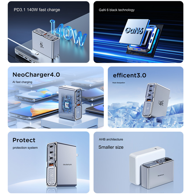 Нова GaN-зарядка відрізняється напівпрозорим дизайном, має три порти USB-C та один порт USB-A. Заявлено максимальну вихідну потужність 140 Вт, підтримується протокол PD 3.