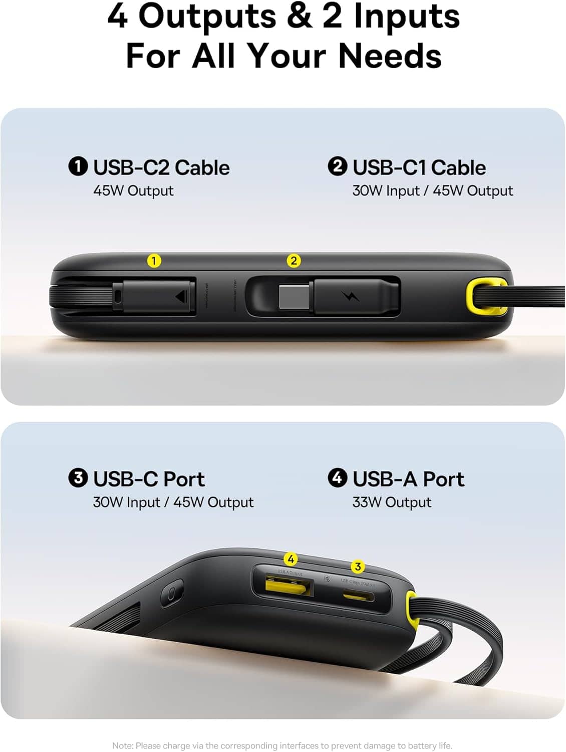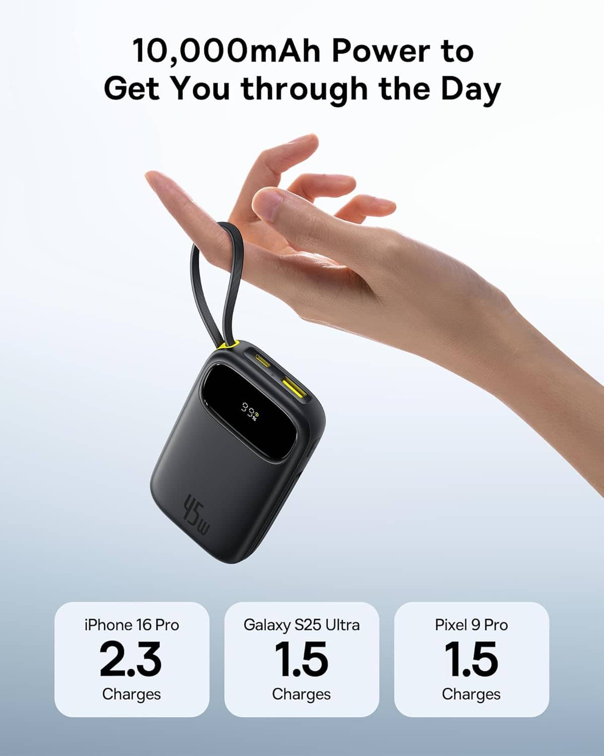 Ємності батареї вистачає, щоб поповнити заряд iPhone 16 приблизно 3.4 рази, iPad Pro — майже 2 рази, Huawei Mate 60 — близько 2.4 рази. Сам акумулятор можна зарядити через USB-C потужністю до 30 Вт. Пристрій також оснащений LED-екраном, що відображає рівень заряду.