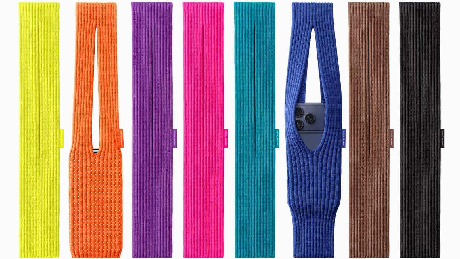 Чохол виготовлений із цільного 3D-в'язаного полотна, створеного в дусі філософії ISSEY MIYAKE A Piece of Cloth (Шматок тканини). Його рифлена структура розтягується, дозволяючи вмістити iPhone, AirPods чи інші дрібні предмети. Крізь плетіння частково видно екран, а сам аксесуар можна носити в руці, прикріпити до сумки або надіти на тіло.
