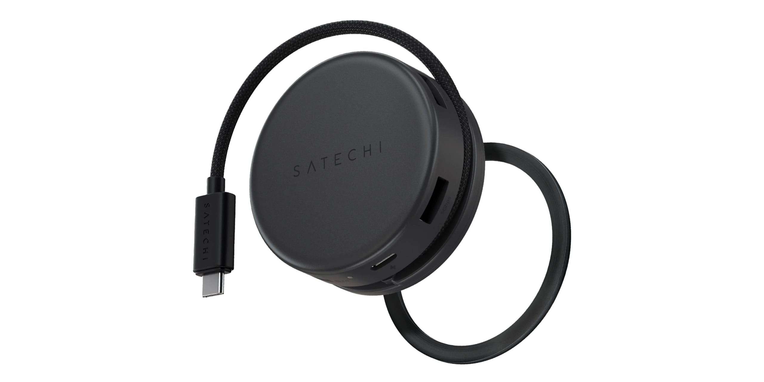 Він кріпиться до смартфонів та ноутбуків за допомогою магнітів, але при цьому не працює як бездротова зарядка, а виступає як хаб. Короткий вбудований USB-C кабель для підключення до мобільного пристрою фіксується навколо корпусу, коли не використовується.