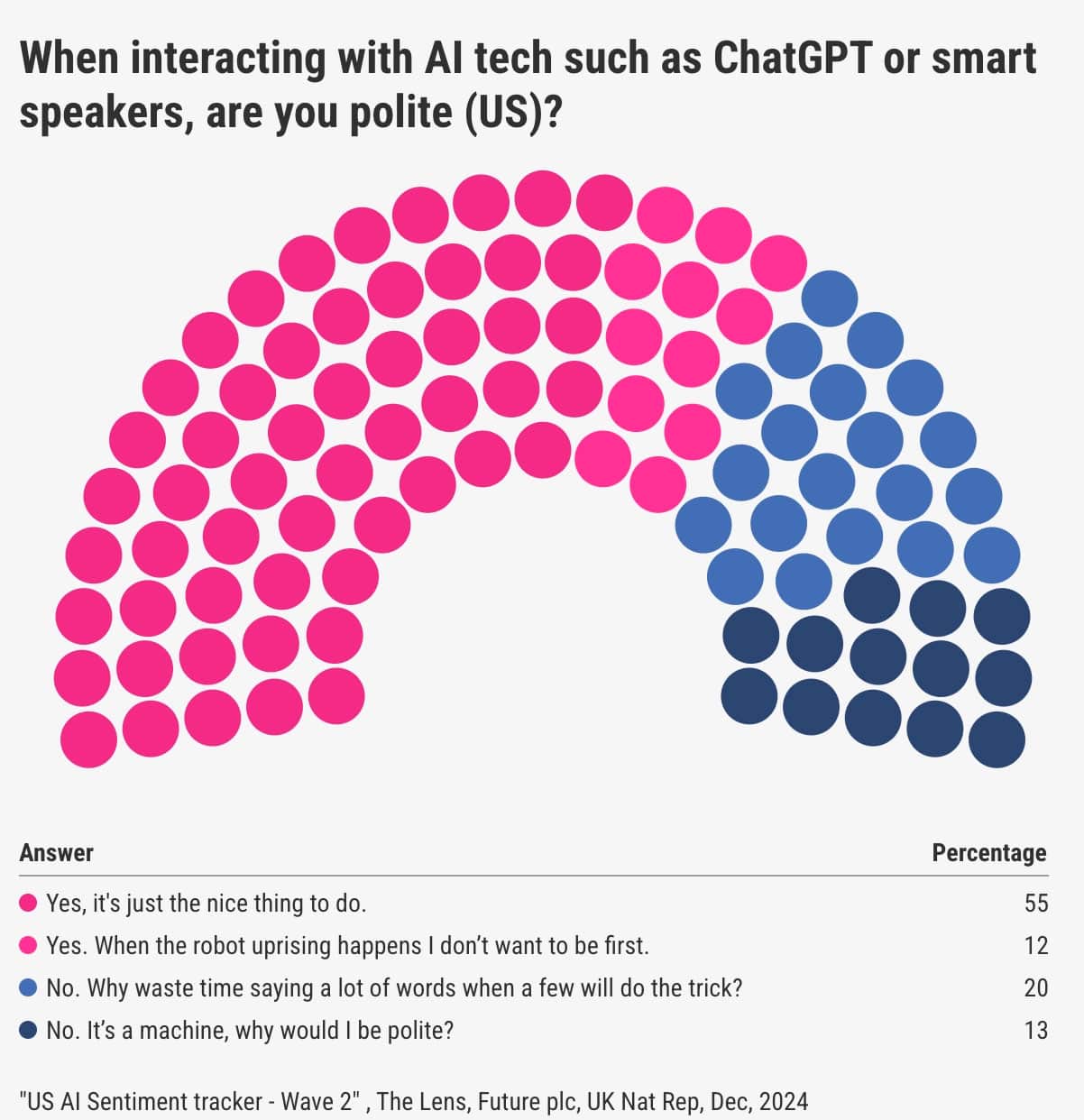 У грудні 2024 року група дослідників з Future опитала користувачів зі США та Великобританії, чи ввічливо вони спілкуються з AI. Зараз результати дослідження стали відомі — ними поділилися в TechRadar.