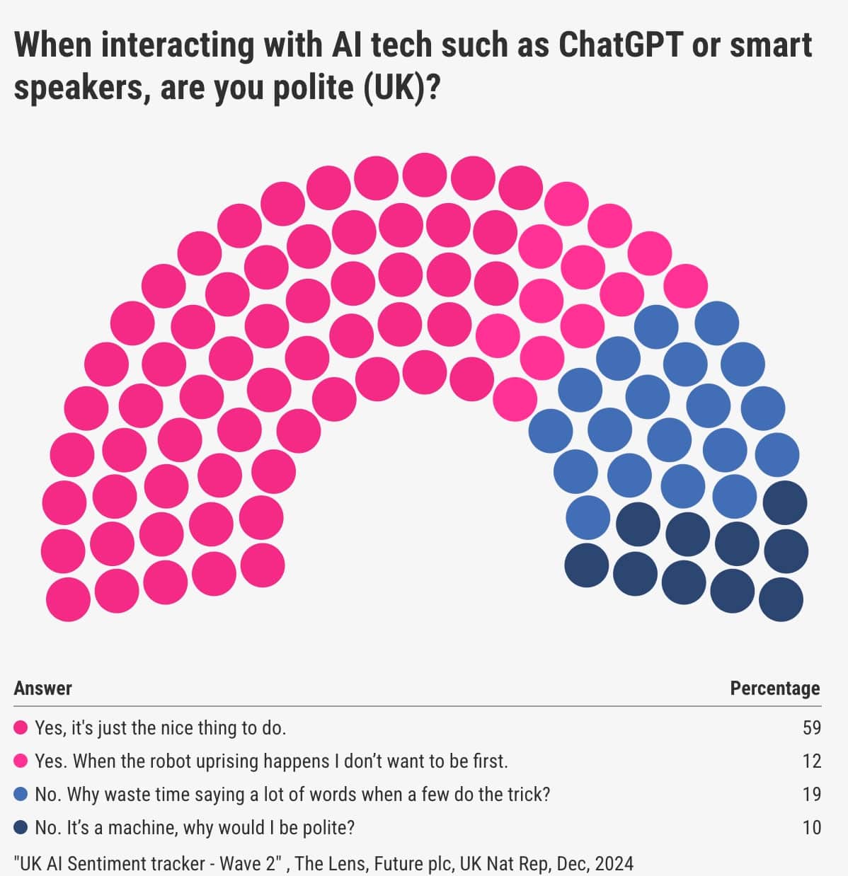 «Втішно бачити, що користувачі вважають, що ввічливе ставлення до помічників на базі AI — це правильне рішення. Особисто я вважаю, що це важливо з погляду суспільства. Якщо неповажне ставлення до помічників на базі AI стане прийнятним, така поведінка почне проникати у міжособистісну взаємодію, а це слизька доріжка», — Бен Вуд, головний аналітик CCS Insight.