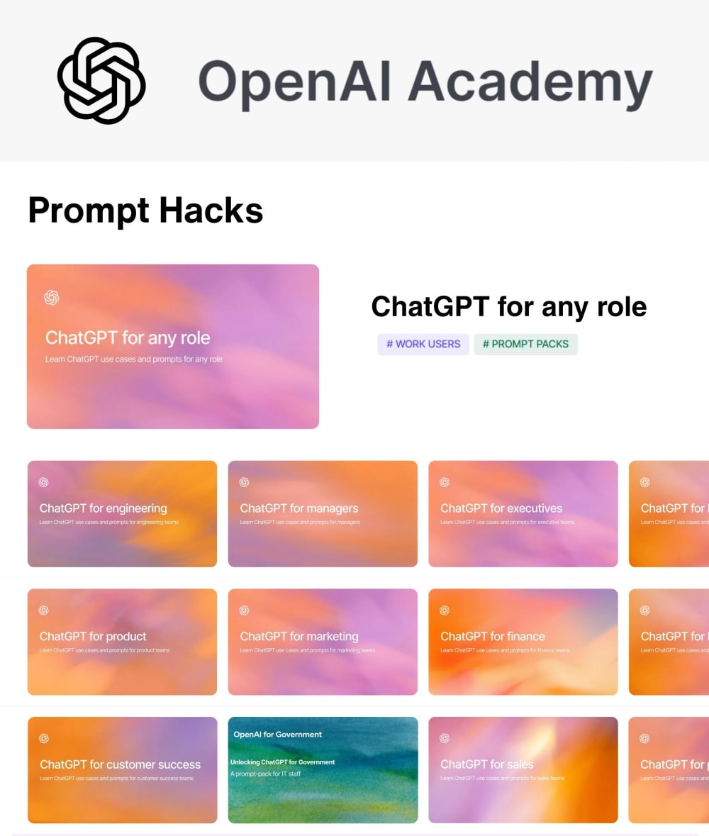 Добірки опубліковані у розділі Prompt Packs на офіційному сайті OpenAI Academy.