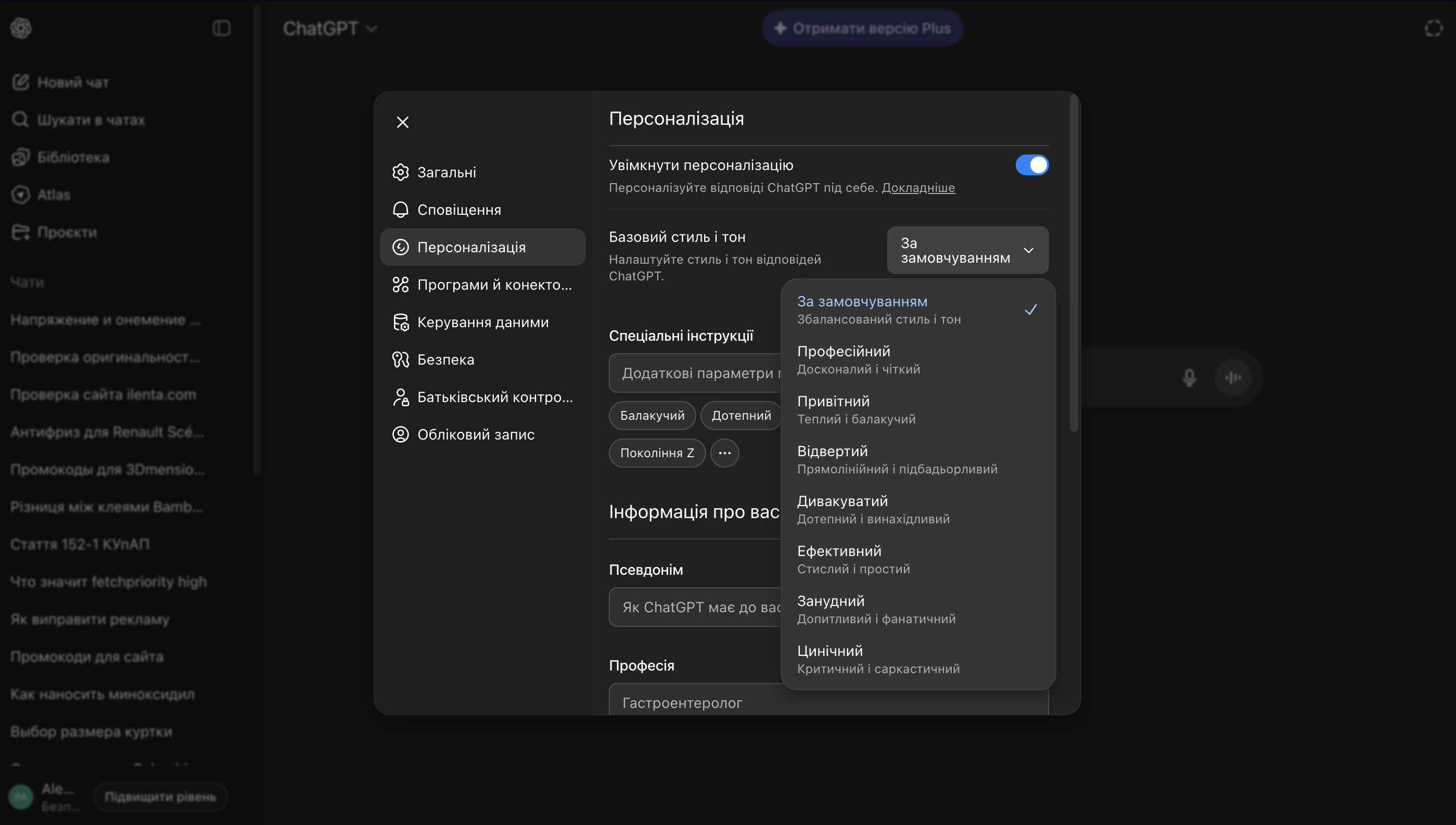 Компанія також розширила набір пресетів особистості — тепер ChatGPT підтримує вісім варіантів тону: «За замовчуванням», «Професійний», «Привітний», «Відвертий», «Дивикуватий», «Ефективний», «Занудний» і «Цинічний». Додатково стартує експеримент із більш тонкого настроювання стилю спілкування, доступ до якого з'явиться у частини користувачів вже цього тижня.