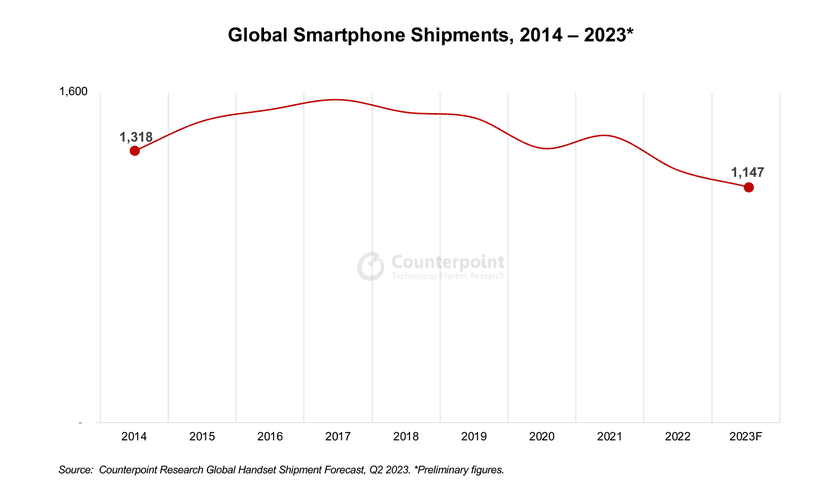 Компанія Counterpoint Research поділилася своїми оцінками щодо підсумків 2023 року для мобільного ринку.