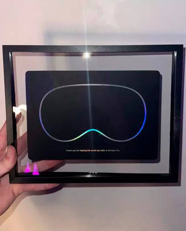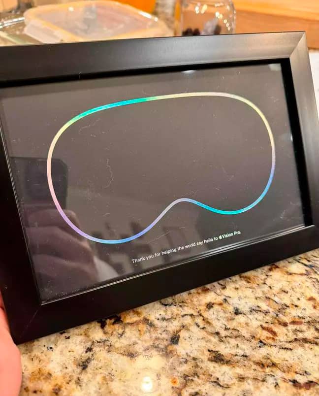 На честь завершення робіт над Vision Pro та довгоочікуваного виходу гарнітури на ринок компанія видала кожному співробітнику, який займався розробкою пристрою, пам'ятний знак у вигляді грамоти у рамці.