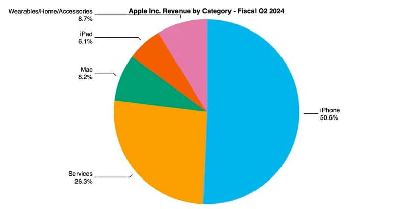Судячи з опублікованих даних, iPhone все ще приносить компанії половину виручки, а на другому місці знаходяться сервіси — враховується також прибуток від App Store.