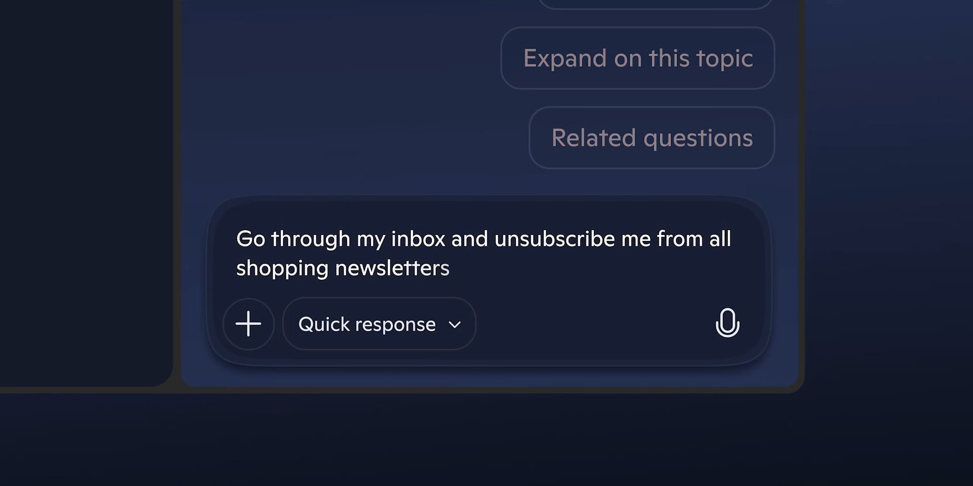 Новий режим поєднує відповіді від нейромережі, результати пошуку та навігацію в одному вікні. Copilot тепер аналізує не лише поточну вкладку, а й усі відкриті — він може зібрати інформацію з них або порівняти товари на різних сторінках.