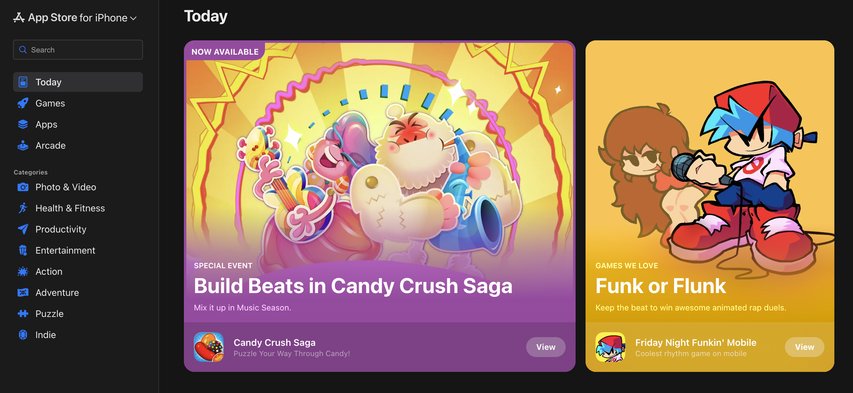 На сайті з'явилася вкладка Today з добірками та рекомендаціями, а також розділи з іграми, додатками та тайтлами Apple Arcade. Кожна програма має власну сторінку з описом, скріншотами та кнопкою для відкриття в App Store, якщо він встановлений ​​на пристрої.