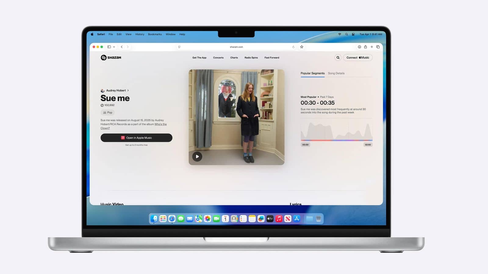 Popular Segments виділяє ключові моменти пісні, що викликали найбільший інтерес у користувачів за останні сім днів. Вона доступна для топових композицій із чартів Shazam і заснована на обсягах запитів. Інтерфейс показує відносну популярність кожного сегмента композиції: якщо навести курсор на графік, можна побачити точний час та відповідний фрагмент.