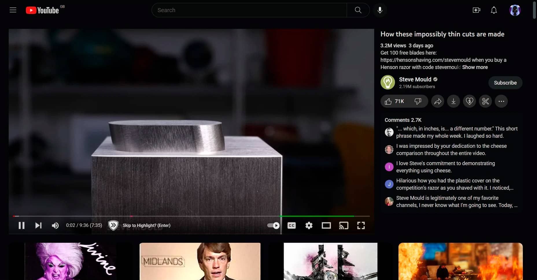 На прикладі нового дизайну видно, що інтерфейс ще не завершено. Наприклад, між панеллю коментарів та списком рекомендації залишається великий проміжок. Можливо, на цьому місці буде ще якийсь блок — наприклад, рекламний. Також не виключено, що до фінального релізу панель коментарів просто розтягнуть.