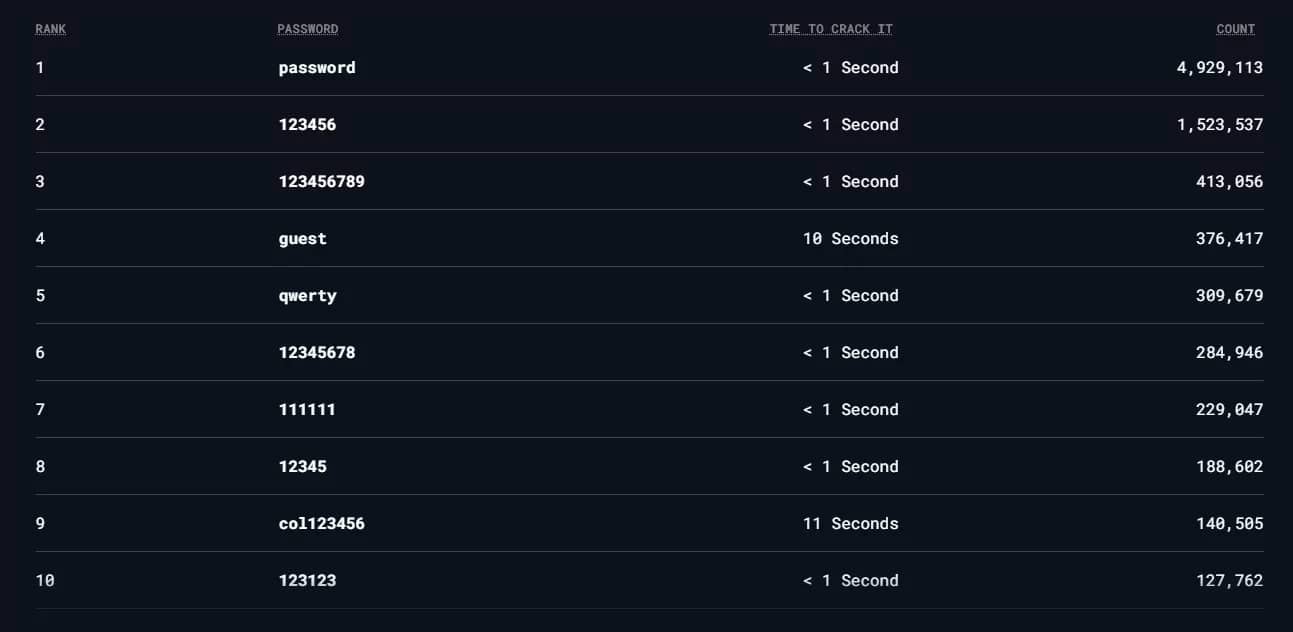Дослідники провели аналіз по 30 країнах, а також враховували стать користувачів, якщо така інформація була доступною. У NordPass стверджують, що 80% паролів зі списку можна зламати менш ніж за секунду. На деякі складніші варіанти знадобиться кілька хвилин.