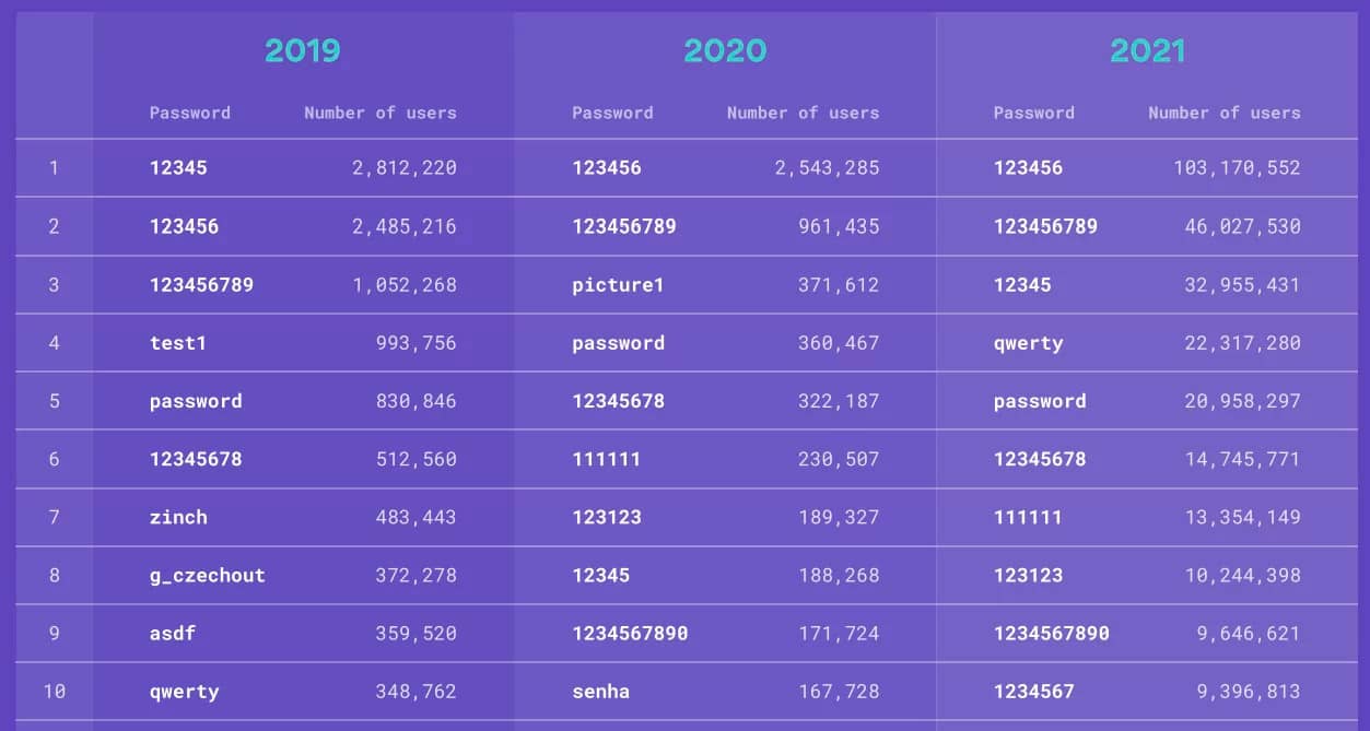 Поточний список був складений у співпраці з незалежними дослідниками, які спеціалізуються на вивченні різних випадків кібербезпеки. Вони проаналізували базу даних обсягом 3 ТБ та обрали 200 найпоширеніших паролів 2022 року. Незважаючи на загрози, що зростають, а також обізнаність користувачів у сфері кібербезпеки, люди, як і раніше, використовують дуже слабкі паролі для захисту своїх облікових записів. Мабуть, старих звичок позбутися непросто. Крім того, поточне дослідження також демонструє вплив культури на вигадування паролів.