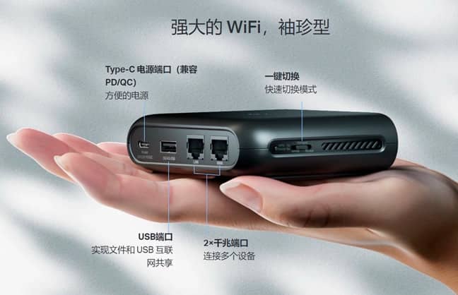 Маршрутизатор оснащено двома гігабітними мережевими портами та інтерфейсом USB 2.0, може виступати 3G/4G USB-модемом, пристроєм для спільного доступу до мережі через USB або мобільною точкою доступу. Підтримує різні режими, включаючи точку доступу, підсилювач сигналу та режим клієнта.