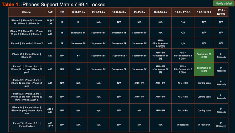 При цьому у звіті Cellebrite зазначено, що на успішність злому впливає не лише версія операційної системи, а й модель пристрою. Наприклад, iPhone XR і iPhone 11, які працюють під керуванням iOS 17.1–17.3.1, все ще піддаються злому інструментами, що є у компанії. У той час як iPhone 12 з такою ж операційною системою має кращий захист, і зламати його не є можливим.