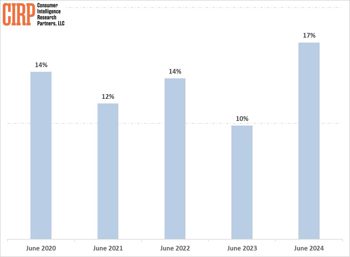 Відсоток покупців iPhone, які мали телефон Android (червневі показники за останні п'ять років). Інфографіка: CIRP