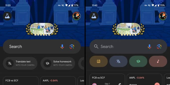 Google тестує редизайн своєї програми Google Пошук для Android. Компанія переробила панель швидких дій, що робить головну сторінку візуально менш перевантаженою.
