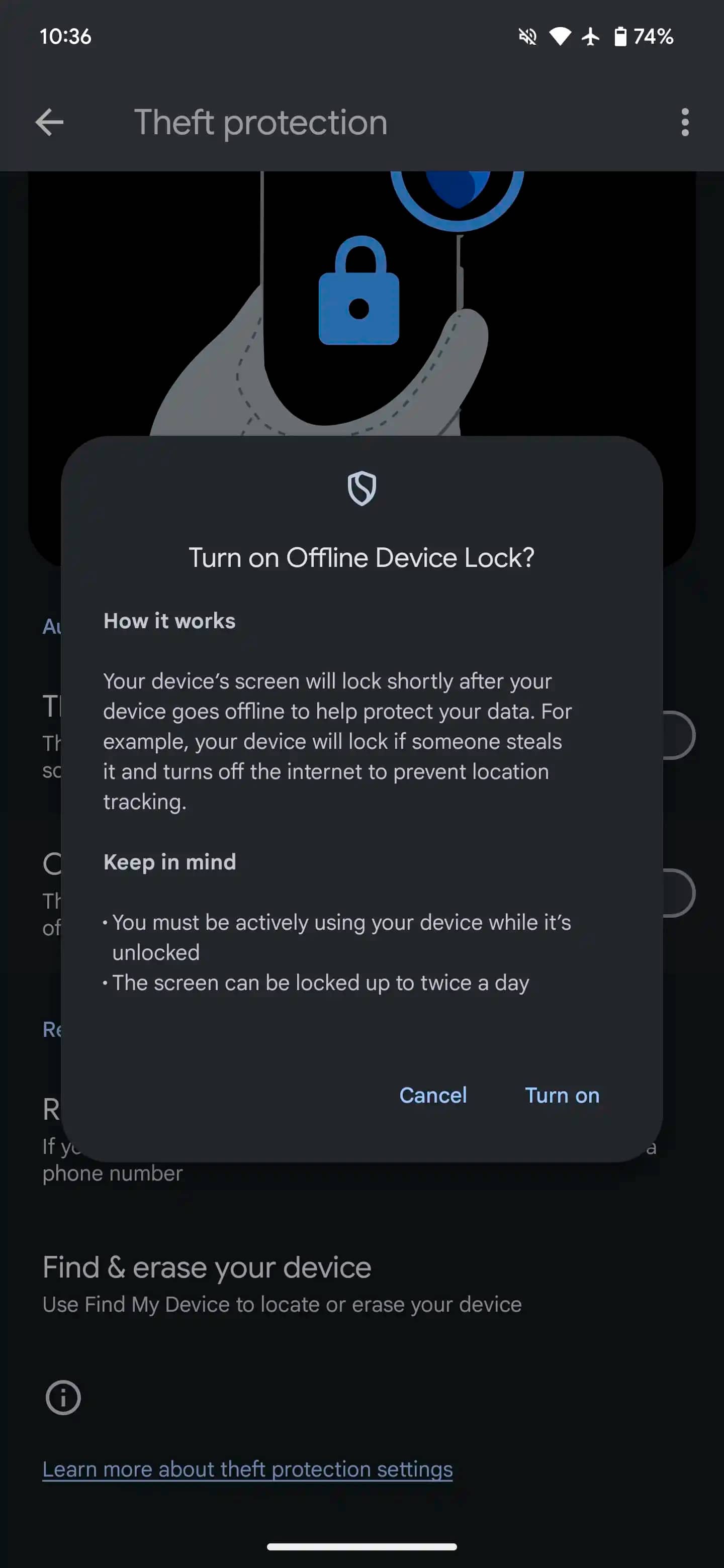 - «Блокування пристрою в режимі офлайн»: функція автоматично блокує екран смартфона, якщо злодій намагається відключити пристрій від інтернет-з'єднання.