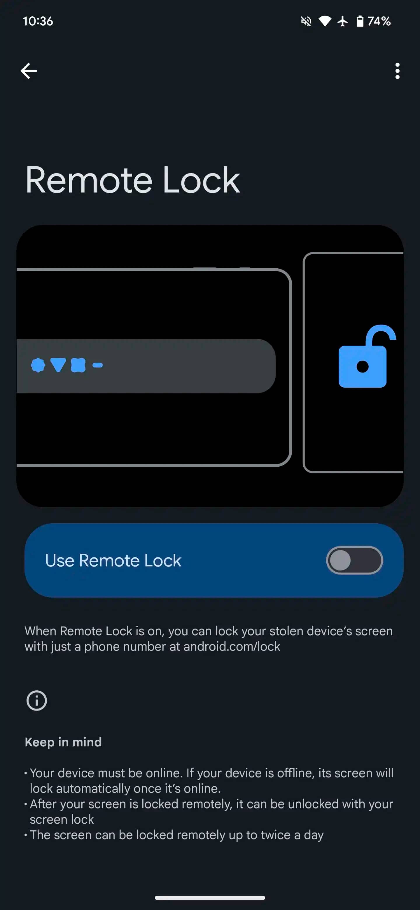 - «Видалене блокування»: при крадіжці смартфона ви можете заблокувати його віддалено на сайті android.com/lock за одним номером телефону.