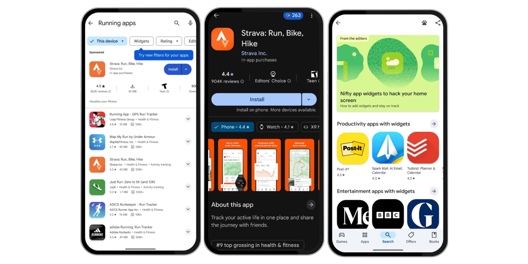 Новий фільтр показуватиме лише ті програми, які мають віджети. Спеціальні значки в описі програм допоможуть користувачам відразу побачити, чи програма підтримує цю функцію. А в редакційних добірках Google збиратиме найкращі віджети та демонструватиме їх можливості.