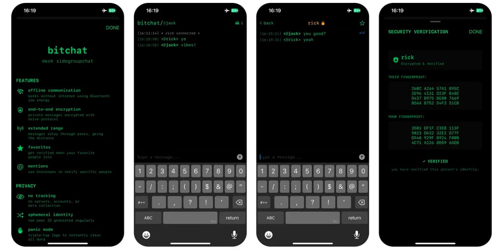 Bitchat створений у рамках відкритої ініціативи and Other Stuff, яку фінансує сам Дорсі. Програма дозволяє спілкуватися з людьми поблизу без обміну номерами або електронною поштою — зручно, наприклад, на концертах та конференціях. Всі повідомлення шифруються, а функція Panic Mode стирає листування потрійним торканням екрана.