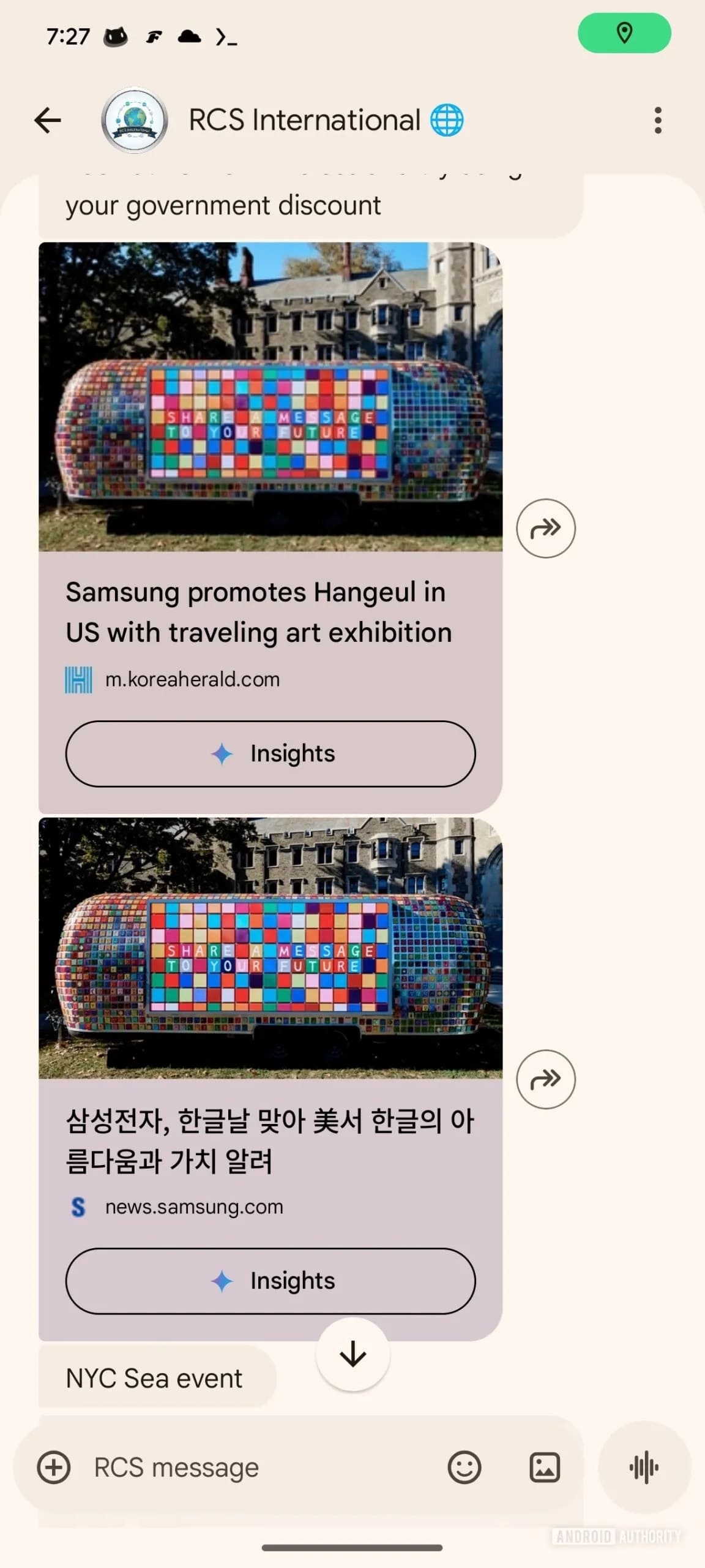Видання Android Authority змогло отримати частковий доступ до функції: кнопка Insights є на кожному повідомленні, що містить веб-посилання. Її натискання ні до чого не призводить, оскільки опція явно не в релізній версії.