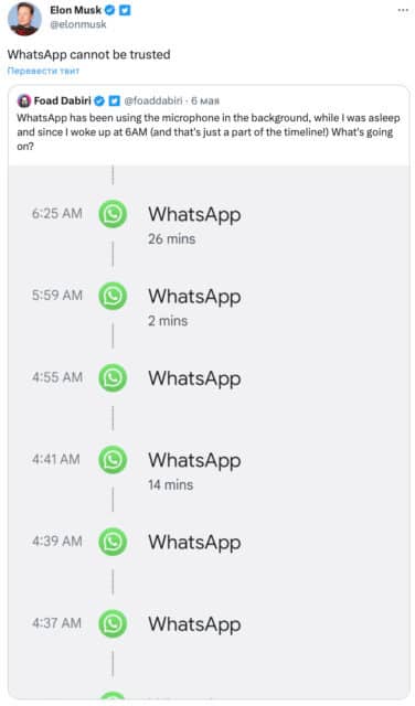 На проблему звернув увагу навіть Ілон Маск. Мільярдер повідомив у своєму «Твіттері», що WhatsApp не можна довіряти. У мережі досі шукають винного. Одні припускають, що це стеження Meta, інші твердять, що це помилка Google.