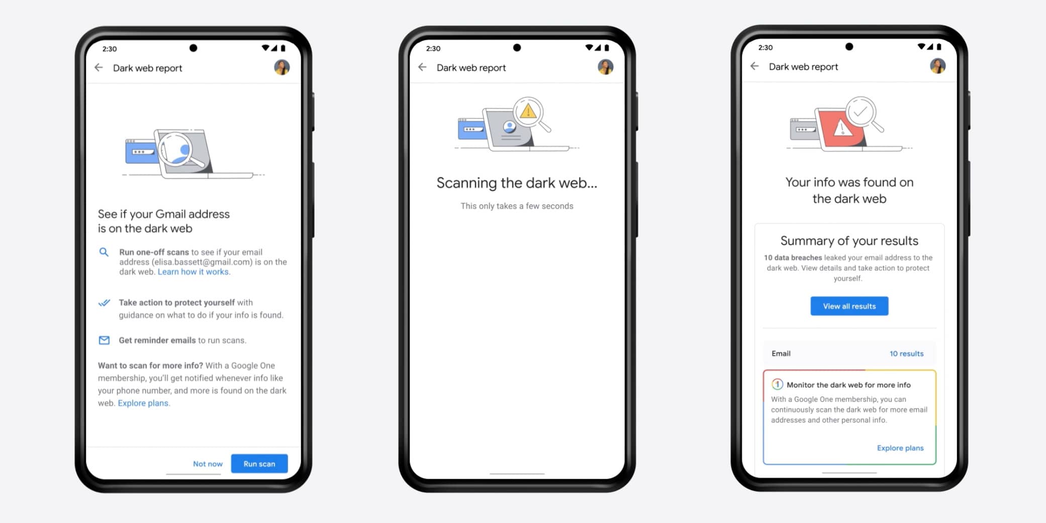 Gmail тепер дозволяє перевірити, чи з'являлася ваша пошта в базах, злитих у даркнет, і дізнатися, які дії варто вжити для захисту облікового запису. Поки що функція доступна лише для користувачів із США з підпискою Google One, але підтримку обіцяють поширити ще на 20 країн у найближчі місяці.