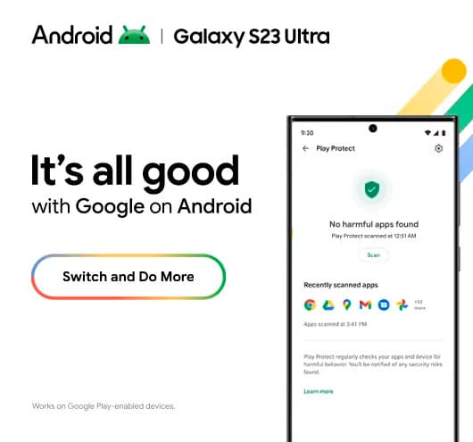Логотип Android у вигляді зеленої голови робота тепер об'ємний — така реалізація почала з'являтися ще на початку року на виставці CES 2023.