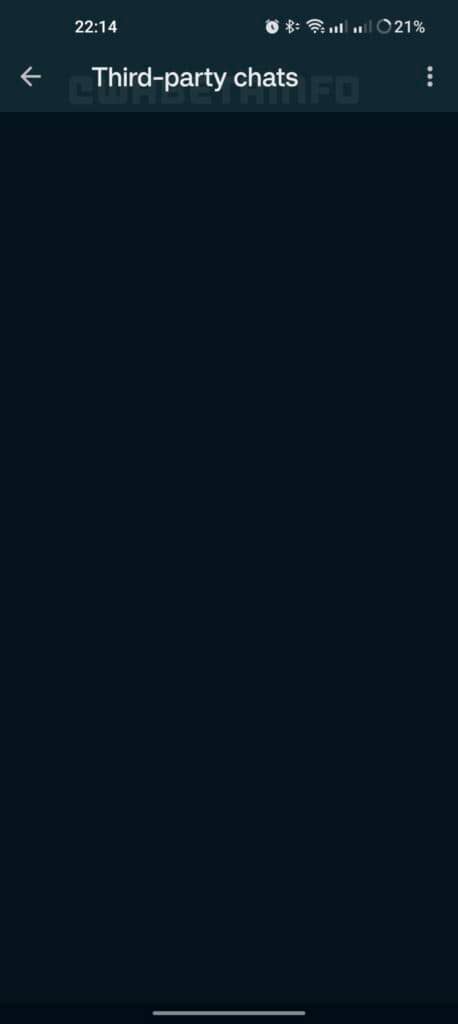 Поки що в цьому розділі нічого немає: мабуть, це тест інтерфейсу, тоді як інтеграція ще в розробці. WhatsApp має ще пів року, перш ніж месенджер повинен буде відповідати новим вимогам Євросоюзу.