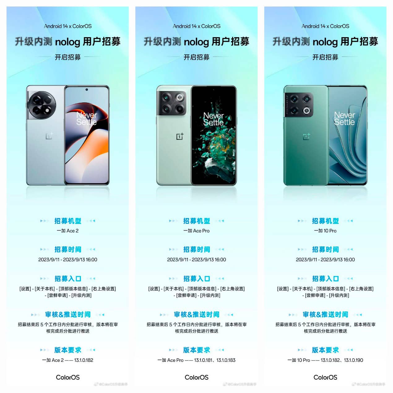 Серед них OnePlus Ace 2, OnePlus Ace Pro, OnePlus 10 Pro, Oppo Find X5 Pro, Oppo Reno10 Pro+. Власники цих пристроїв можуть подати заявку на участь у програмі тестування з 11 по 13 вересня через «Налаштування» на своїх смартфонах.