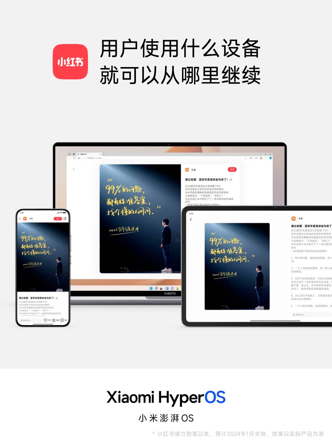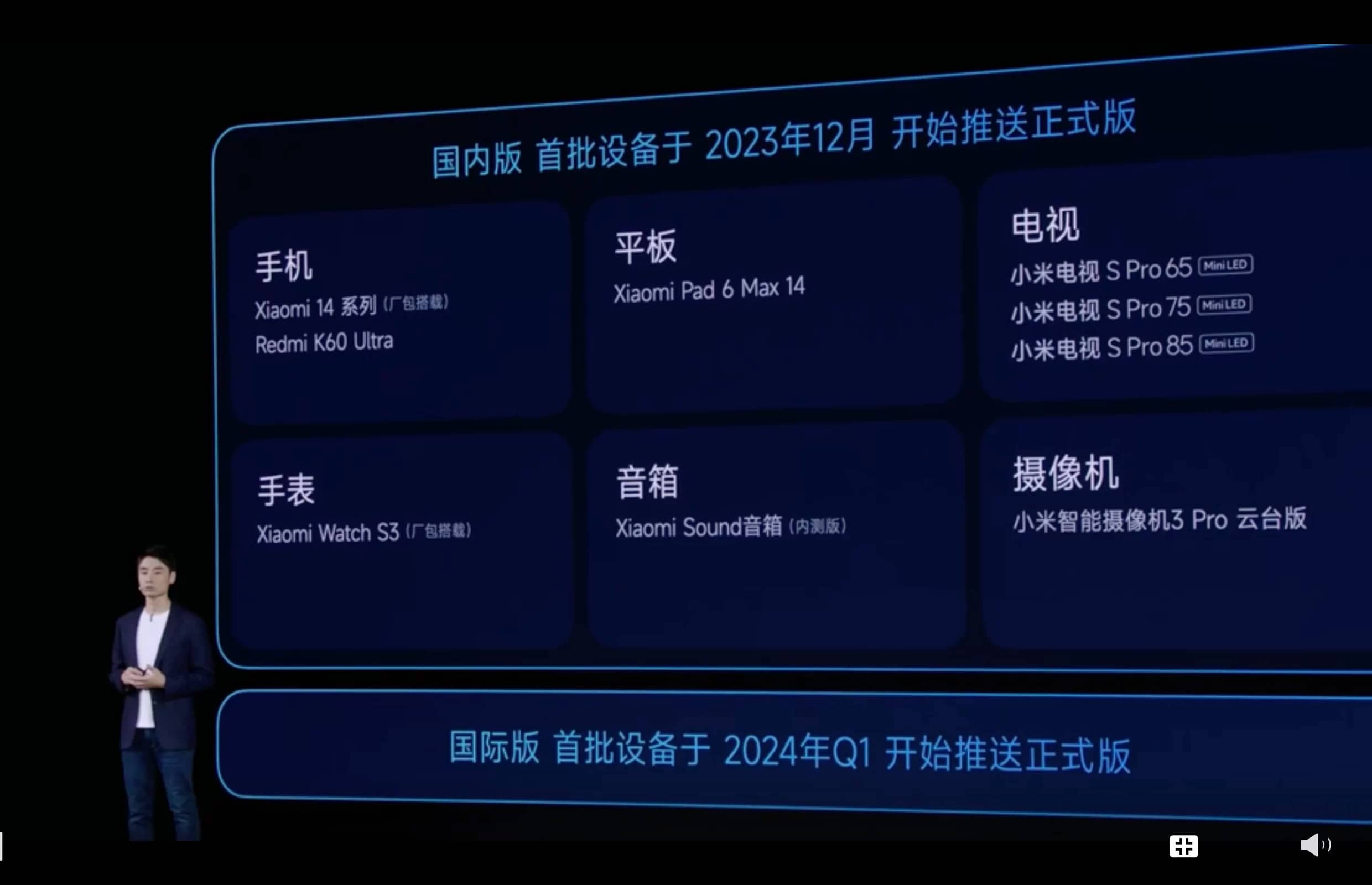 Перша хвиля оновлення до HyperOS у Китаї відбудеться у грудні 2023 року. До неї увійдуть нова серія Xiaomi 14, Redmi K60 Ultra, Xiaomi Pad 6 Max 14, розумний годинник Watch S3, телевізори Xiaomi S Pro 65, 75 та 85, а також колонка Xiaomi Sound та камера Camera Pro PTZ Edition (переклад з китайської). Гаджети на міжнародному ринку почнуть оновлюватись у 1-му кварталі 2024 року.
