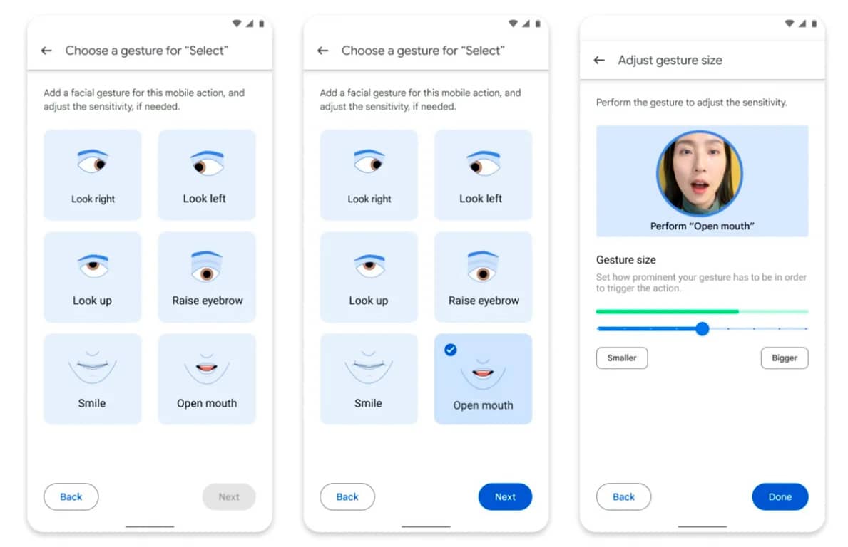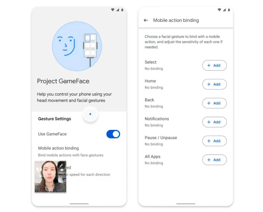 За допомогою технології Project Gameface користувач може керувати своїм гаджетом, не торкаючись пальцями екрана. Наприклад, якщо посміхнутися, станеться натискання, якщо підморгнути правим оком, станеться свайп вгору, підморгнути лівим — свайп вниз. Кількість виразів і те, за що вони відповідатимуть, розробник вибирає сам. Усього Project Gameface підтримує 50 виразів осіб. Всі емоції, що відтворюються, будуть відстежуватися через фронтальну камеру смартфона або планшета та аналізуватися за допомогою ШІ.