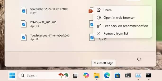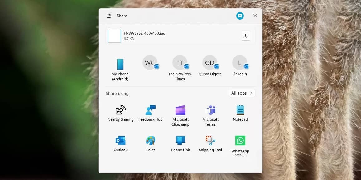 У меню «Пуск» та на панелі завдань Windows 11 тепер є кнопка «Поділитися». Вона дозволяє швидко надсилати іншим користувачам файли та вміст програм.