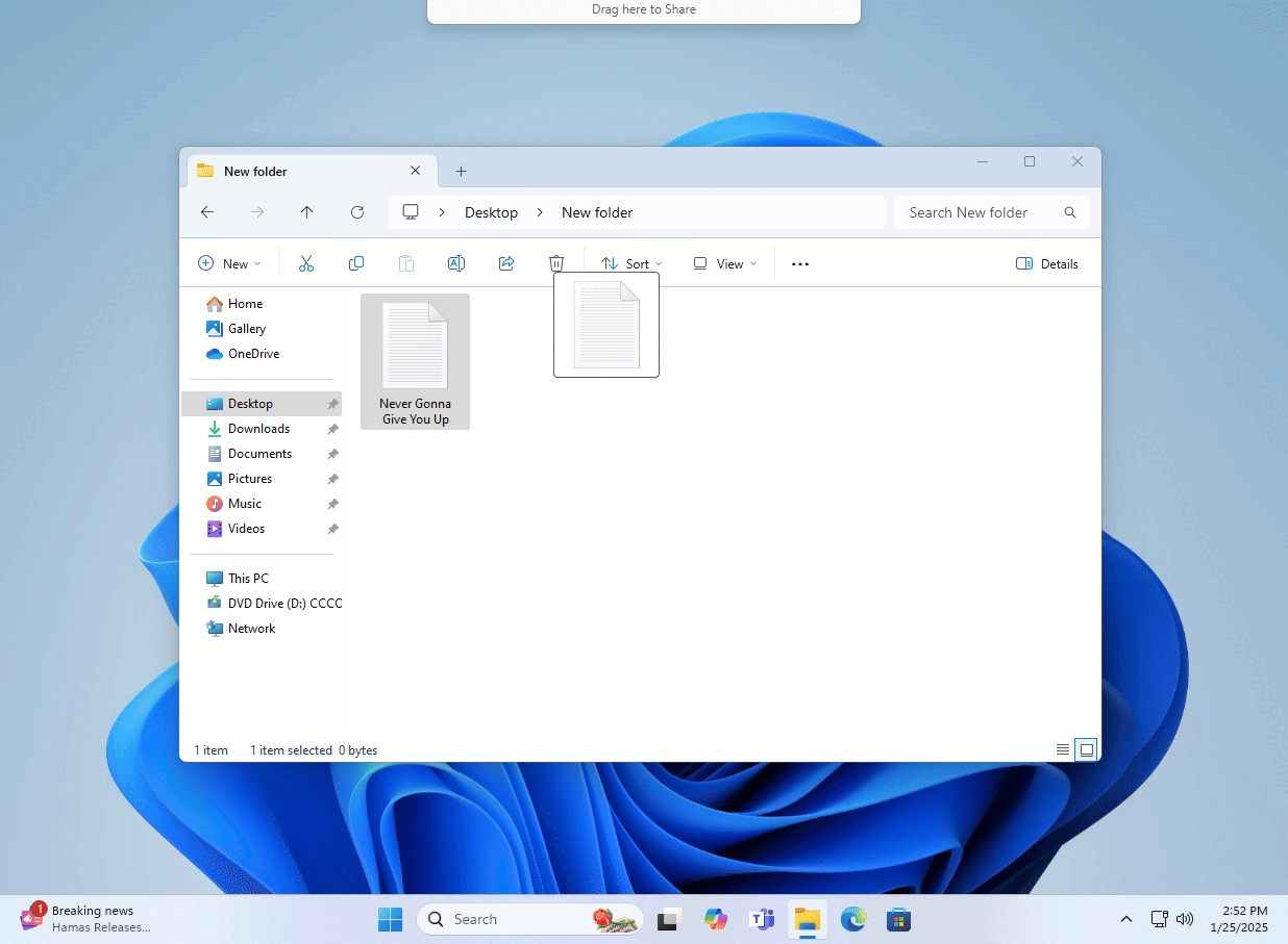У нещодавно випущеній бета-версії Windows 11 (збірка 22635.4805) виявили спрощений спосіб обміну файлами з різними програмами — за допомогою перетягування об'єктів у верхню частину екрана.