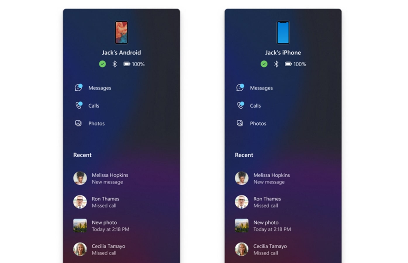 Крім цього, в оновленні додали повідомлення з iPhone або Android-смартфону в меню «Пуск» — у відповідний розділ для роботи зі смартфоном.