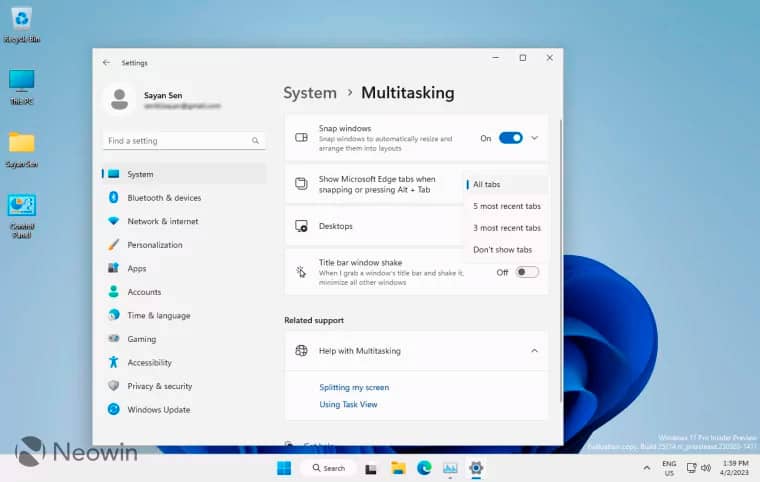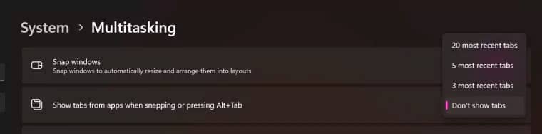 Судячи з опублікованих зображень, розробники обмежили кількість вкладок, що відображаються. Якщо раніше в налаштуваннях системи була можливість вибрати виведення всіх відкритих програм, зараз їхня кількість обмежена двадцятьма вкладками. Змінити налаштування можна у розділі «Мультизадачність» (Multitasking).