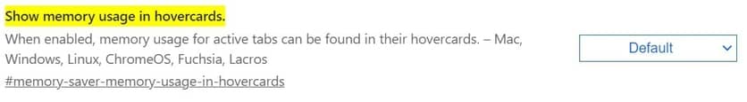 У деяких випадках доведеться додатково ввести в рядок пошуку Show memory usage in hovercards і вибрати пункт Enabled With update on Navigation вручну.