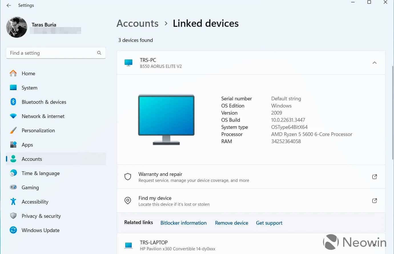 Нова сторінка з'явилася в останній бета-версії Windows 11 у збиранні 22635.3495. У налаштуваннях додали розділ «Пов'язані пристрої». Там будуть відображатися комп'ютери та ігрові приставки Xbox, які прив'язані до облікового запису Microsoft користувача.