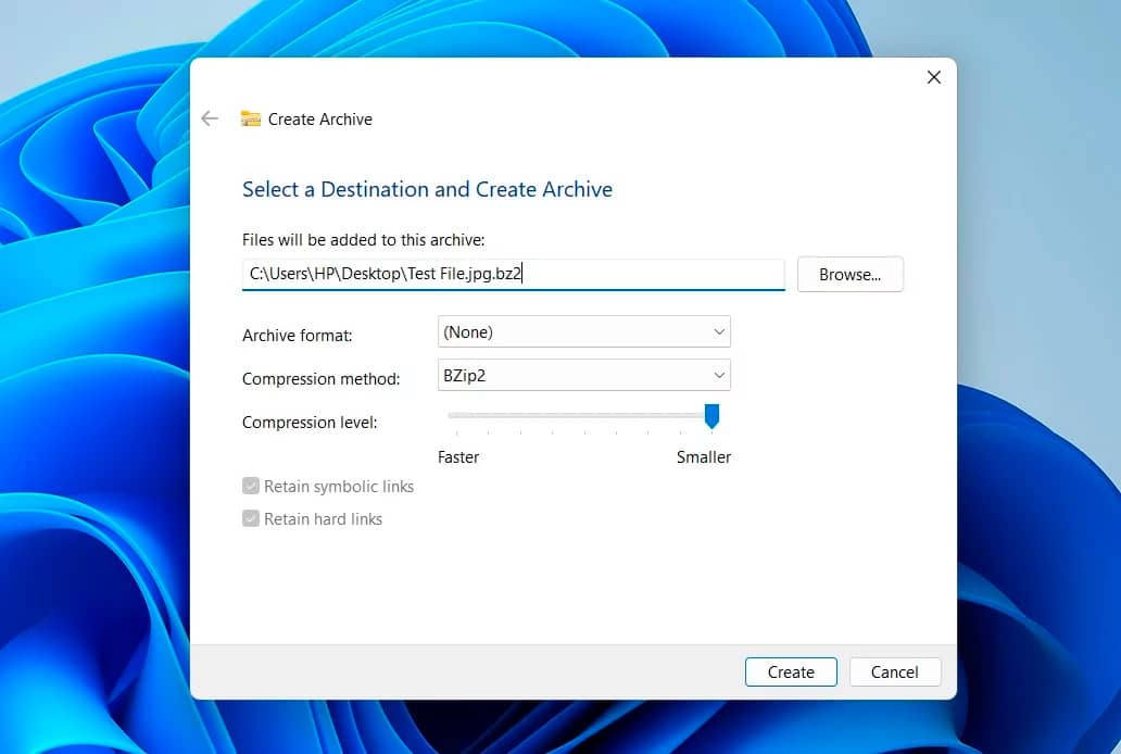 Також розробники операційної системи додали розширені налаштування під час створення архіву. Користувачі зможуть вибрати не тільки папку, в якій зберігатиметься файл, але також формат архіву, метод стиснення та рівень стиснення. Можна встановити галочки «Зберегти символічні посилання» та «Зберегти жорсткі посилання», щоб забезпечити безпеку певних типів ярликів у файлі під час його стиснення в архів.