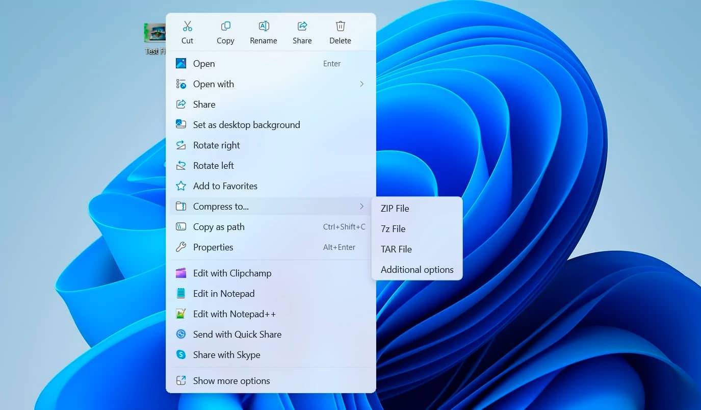 Як видно з опублікованих зображень, достатньо натиснути на файл правою кнопкою миші та в контекстному меню вибрати пункт "Compress to...", а далі — тип архіву. У виданні Windows Latest після проведених тестів заявили, що операційна система досить швидко та добре пакує файли в архіви 7Z і TAR.