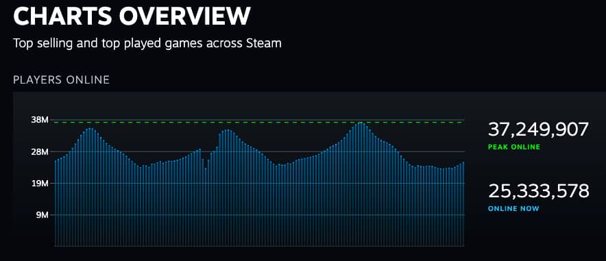 У неділю 25 серпня 2024 року в Steam одночасно перебувало 37 250 431 людина. Це приблизно на 400 000 користувачів більше у порівнянні з попереднім рекордом, встановленим у липні цього року.