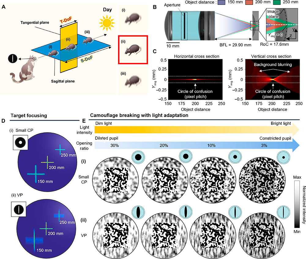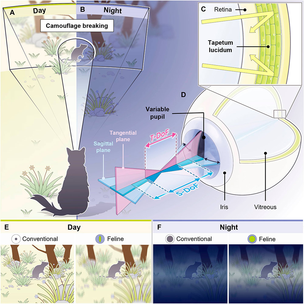 В основі пристрою лежать два ключові елементи, властиві котячим очам: вертикальні зіниці та структура під сітківкою, відома як tapetum lucidum. Ці особливості дозволяють кішкам бачити в умовах слабкого освітлення та розрізняти об'єкти на складних фонах.