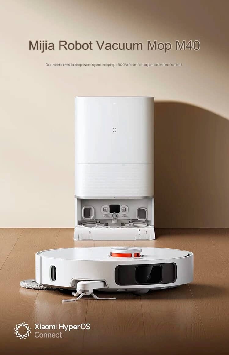 Компанія Xiaomi представила новий робот-пилосос Mijia M40 з удосконаленими подвійними роботизованими руками. Серед можливостей пристрою: підмітання та миття підлоги, а також миття та сушіння.