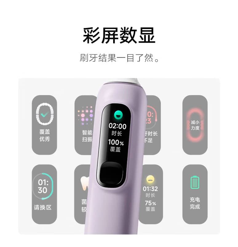 Щітка доступна в трьох кольорах: білому, фіолетовому та синьому. На передній частині пристрою є невеликий кольоровий екран. Виглядає так, ніби у щітку вбудували капсулу від браслета Xiaomi Smart Band. На дисплеї відображається інформація про те, наскільки ефективно відбувається чищення.