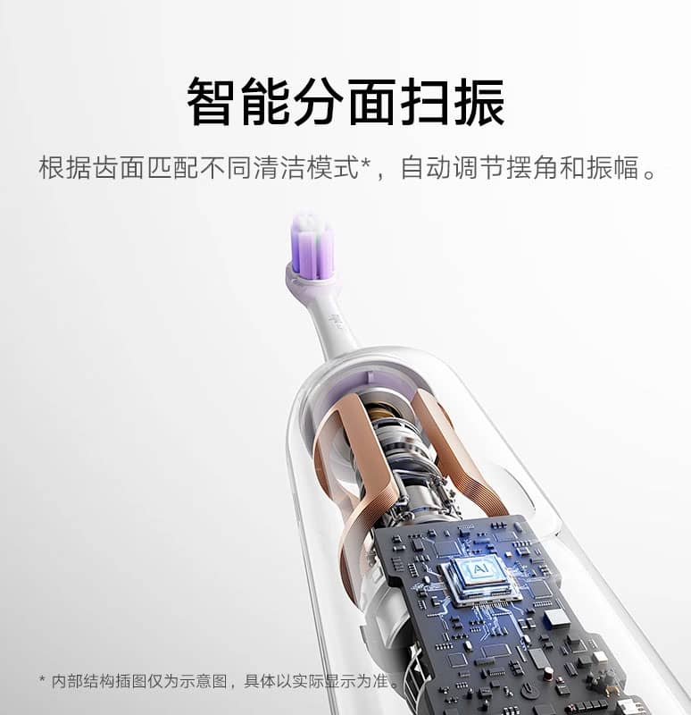 Усередині встановлено 6-осьовий датчик, який відстежує положення щітки у просторі. Також щітка отримала «інтелектуальну технологію вібрації», яка автоматично регулюється під час чищення.