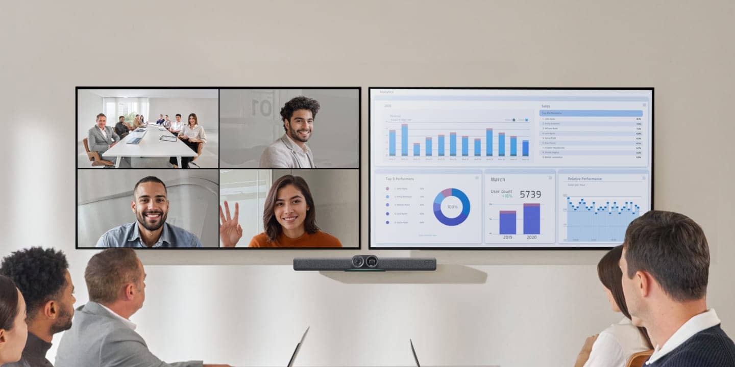 Новинка оснащена ширококутною камерою з кутом огляду 110 градусів та телеоб'єктивом із інтегрованим стабілізатором. Таке поєднання дозволяє одночасно фіксувати як загальні плани, і великі плани кожного учасника. Завдяки алгоритму AI Resolution+ зображення завжди виглядає чітким, а той, хто зараз говорить, автоматично виділяється на екрані з подвоєним дозволом.