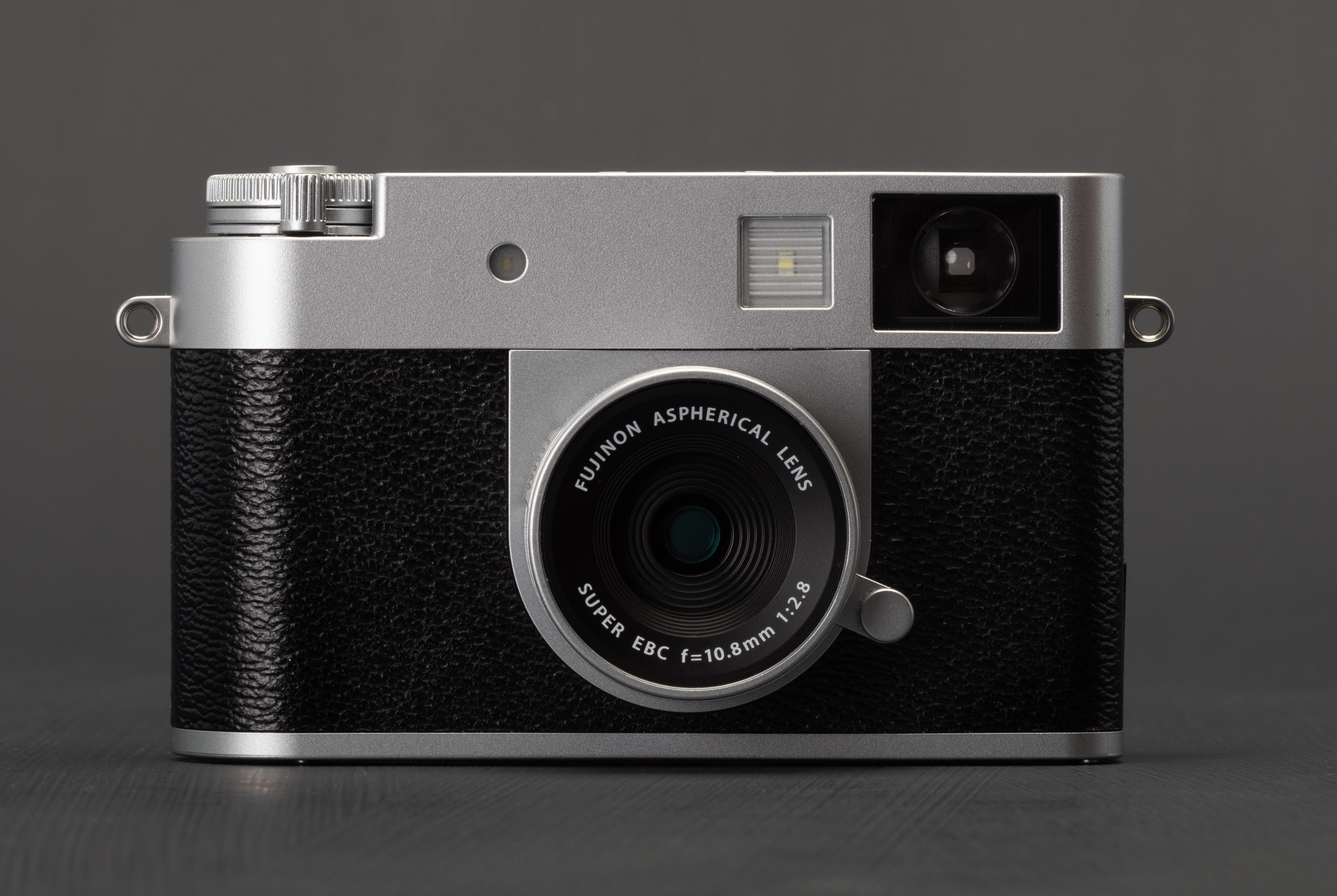 Пристрій оснащений вертикальним сенсором формату 3:4 (18 Мп), об'єктивом 32 мм f/2.8 та оптичним видошукачем. Головне — камера знімає тільки JPEG і пропонує оригінальний режим плівкової камери, де знімки об'єднуються в диптихи, а зміна кадрів відбувається за допомогою важеля перемотування.