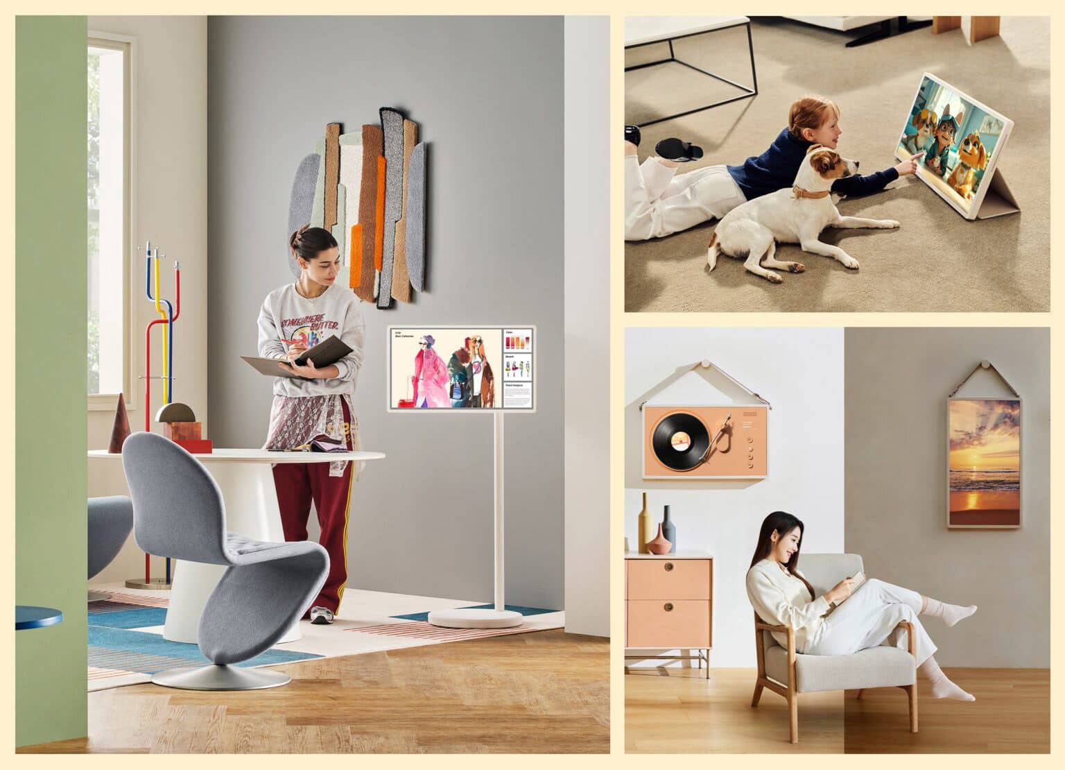 Екран легко від'єднується від підставки одним натисканням, що дозволяє використовувати його на столі, закріпити на стіні або перемикатися між портретним та ландшафтним режимами. Завдяки вбудованому ремінцю дисплей можна підвісити, як настінні годинники, або використовувати як декоративний екран.